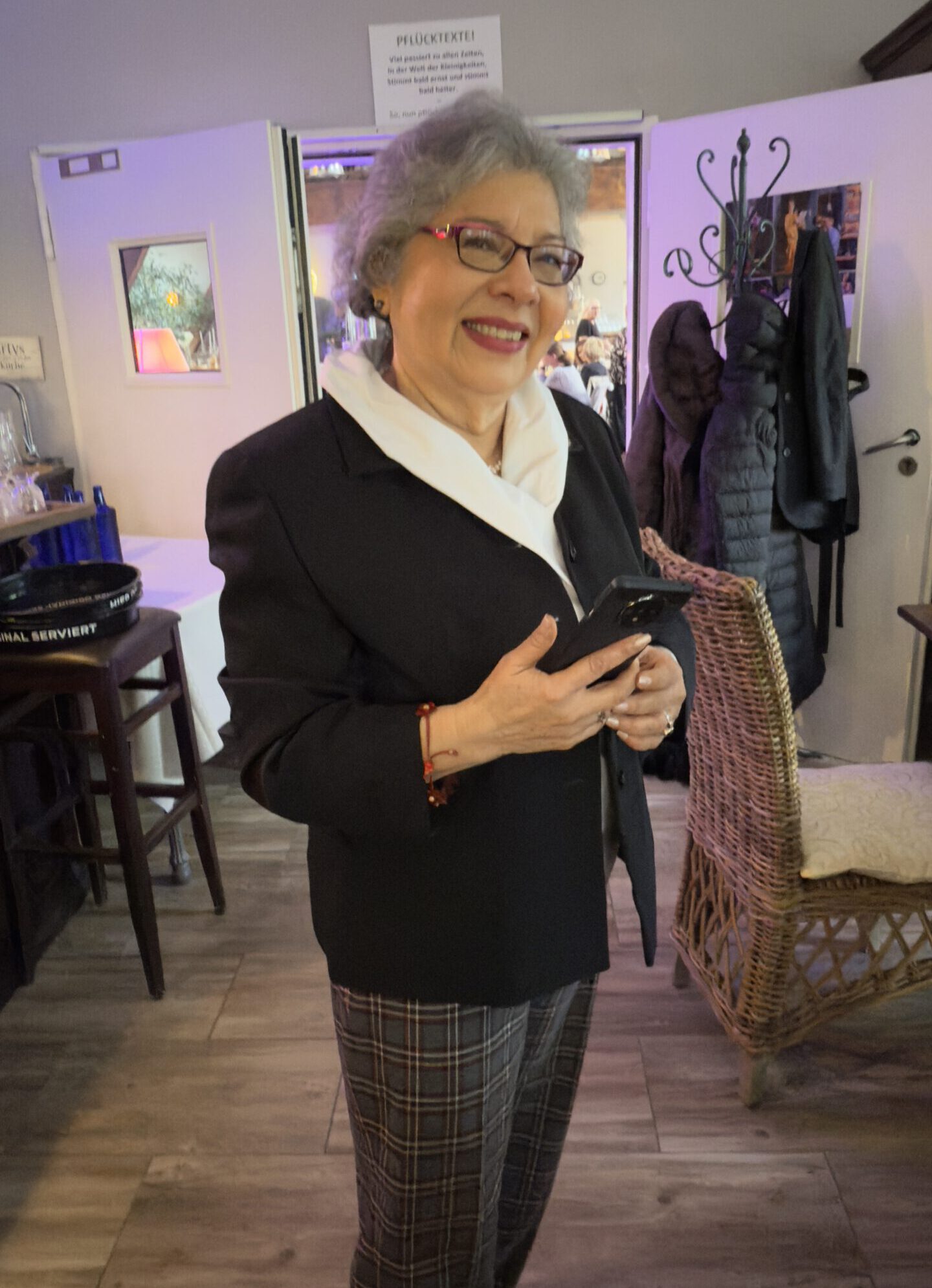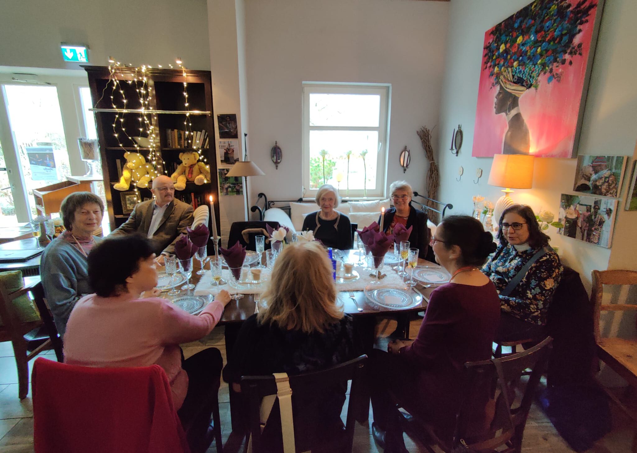 The Winter festive season started with a glass of Prosecco, followed by a delicious Winter Buffet with salads and starters, and rounded off with delicious desserts and homemade cakes. We enjoyed the annual BIWC Winter Party at the famous restaurant ‘Casa Carlotta’ in Berlin-Dahlem. It has almost become a tradition to end the festive day with the joint singing of seasonal carols accompanied on the piano by our member Jo Anne Thomson.